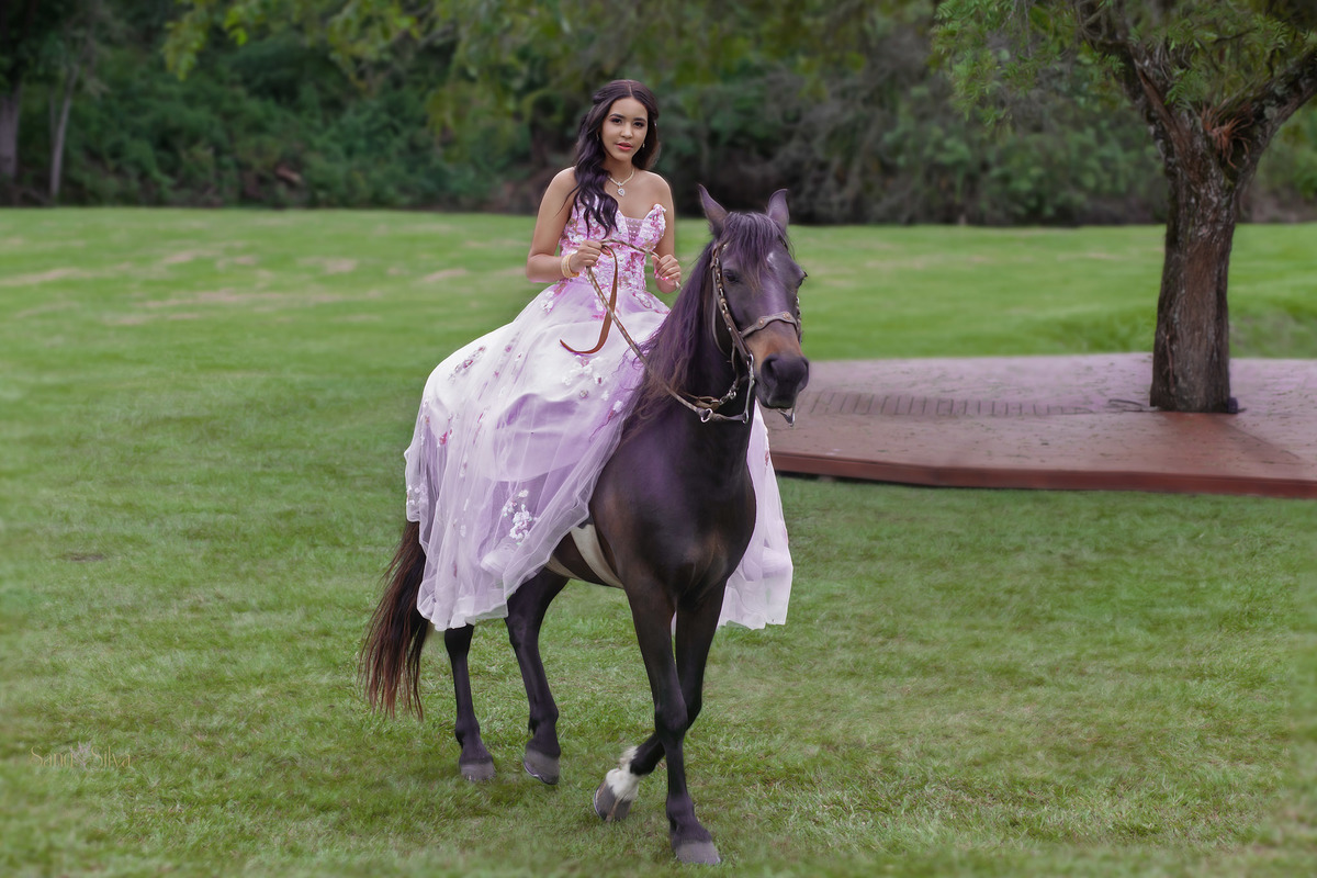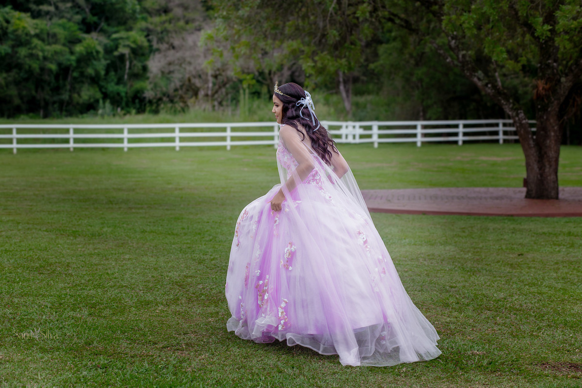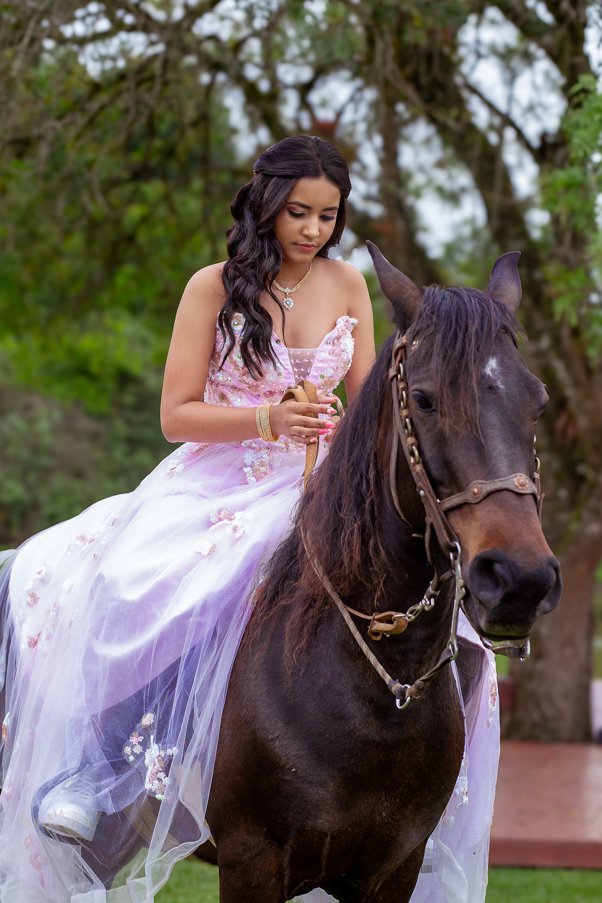 Natalia , nos contou que ama cavalos e seu sonho era se vestir com um vestido de princesa , então criamos um ensaio onde podemos colocar os dois.